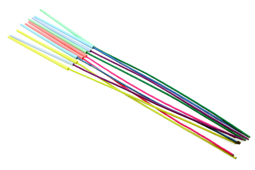 Kolorowe pałeczki bengalskie. Po odpaleniu powodują świecenie i emisję iskier w kolorze pałeczki.