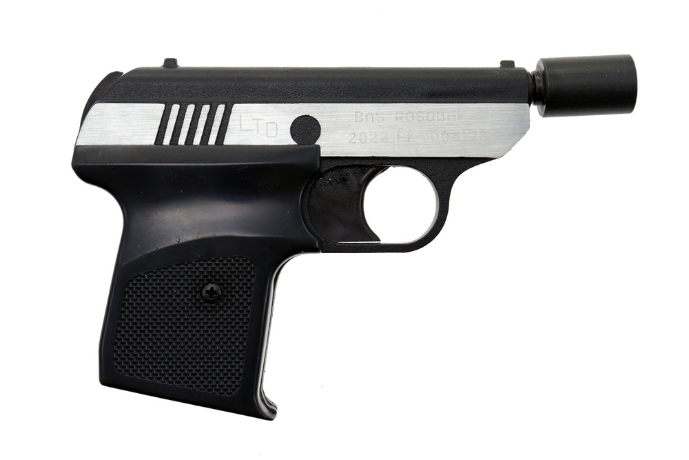 Jest to pistolet bocznego zapłonu i nie wymaga dodatkowych pozwoleń na jego posiadanie.