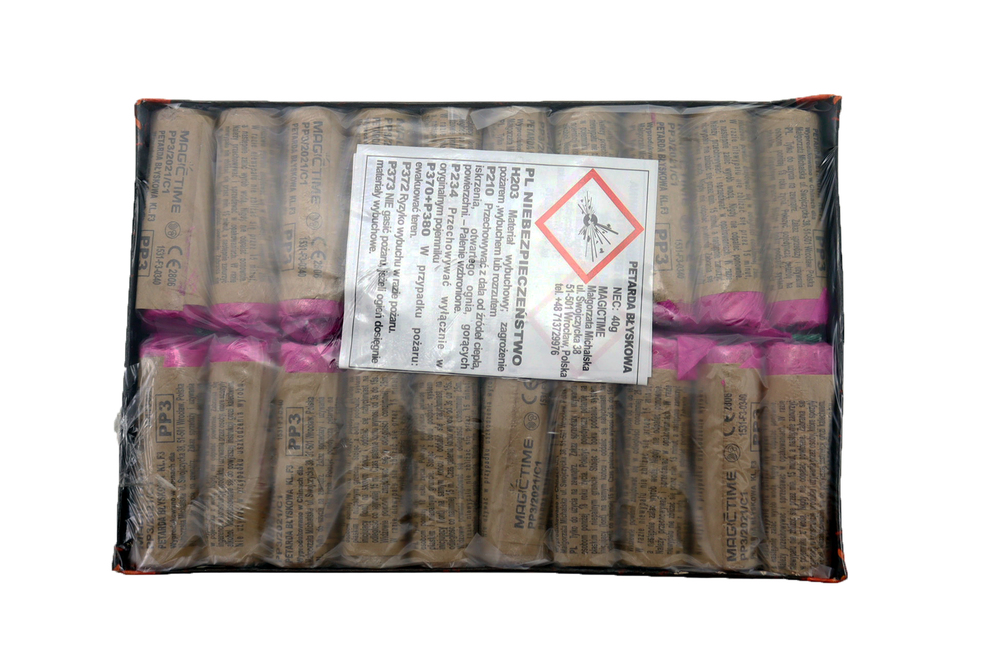 Petardy z zawartością ładunku NEC 2 gramy na sztukę wyprodukowane w 2021 roku.