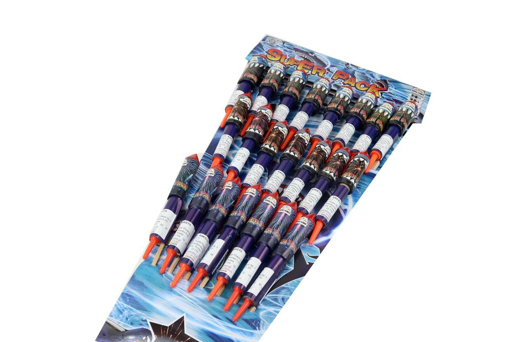 Komplet 22 rakiet, w trzech kalibrach, z różnymi efektami.