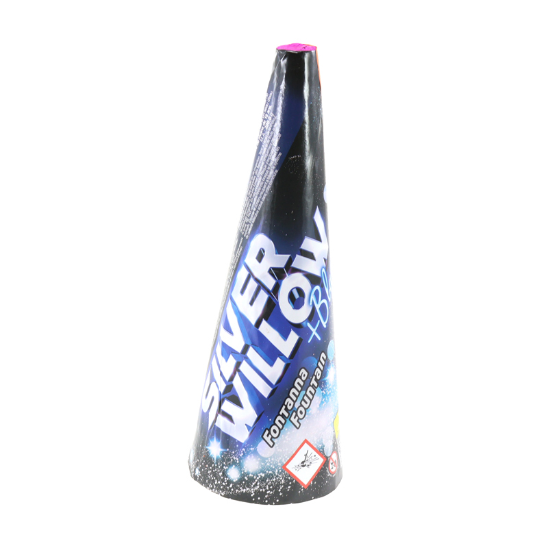 Efekty: srebrna wierzba, zakończona deszczem złotych mieniących się iskier opadających aż do ziemi z niebieskimi kulkami