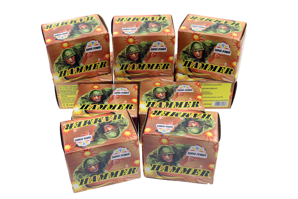 Zestaw zawiera 10 opakowań petard Hammer po 20 sztuk w sumie 200 sztuk.