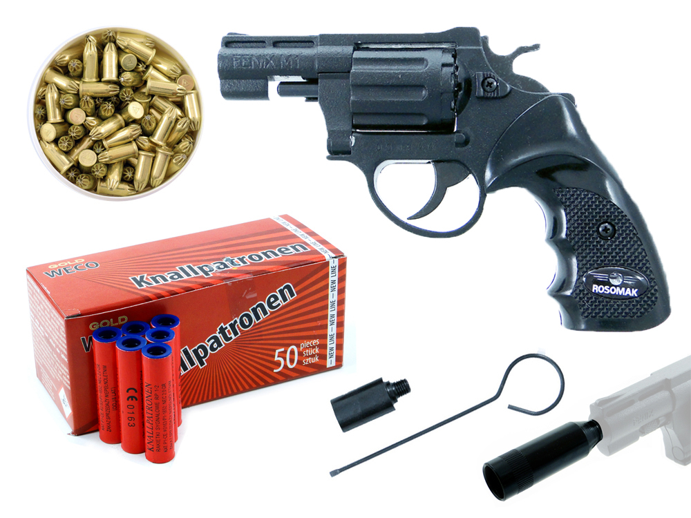 Rewolwer hukowy Fenix Gen.2 lufa 2 cale czarny komplet ze ślepakami, długą nasadką i racami hukowymi