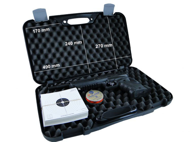 Kufer do transportu broni, wykonany z wytrzymałego tworzywa, wyłożony grubą gąbką o strukturze tzw. szczęki rekina – tak aby broń podczas transportu nie miała możliwości przesuwu.