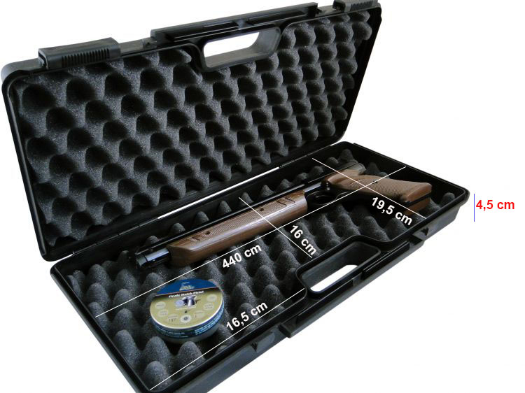 Wykonana z polimeru ABS wytrzymała walizka idealnie nadaje się do przenoszenie bardzo długiej broni sportowej bądź wiatrówek.
