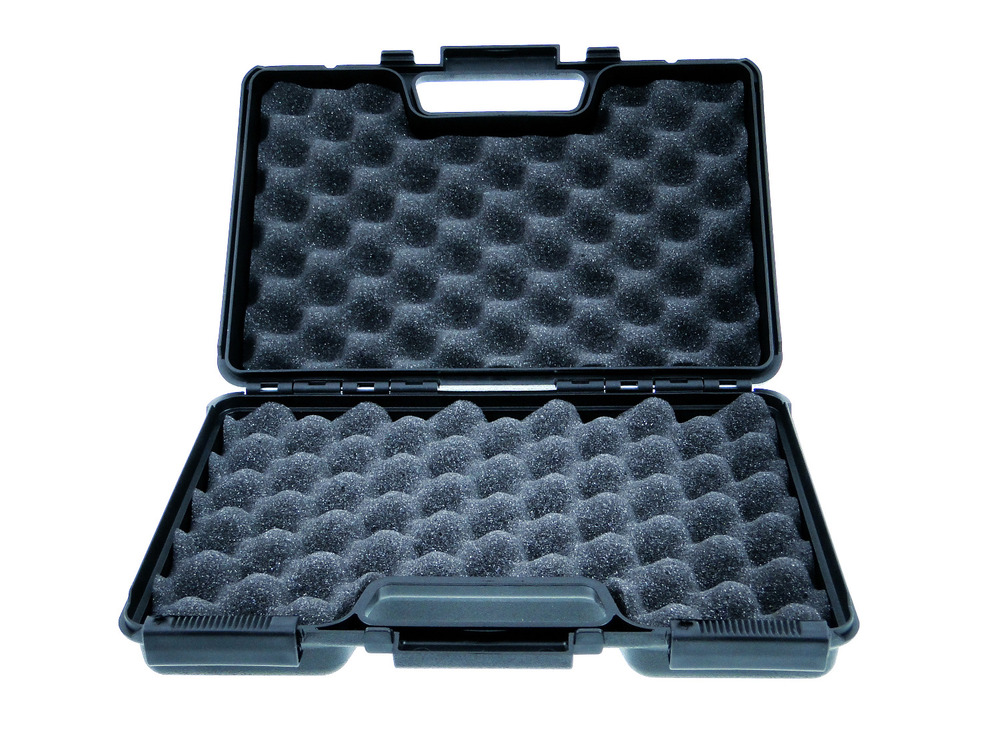 Wypełnienie walizki to gąbka typu szczęka rekina zapobiegająca przemieszczaniu się broni wewnątrz walizki.