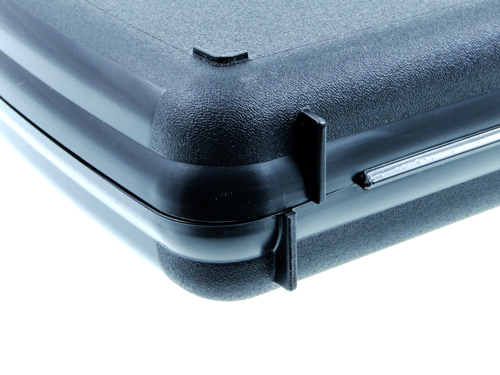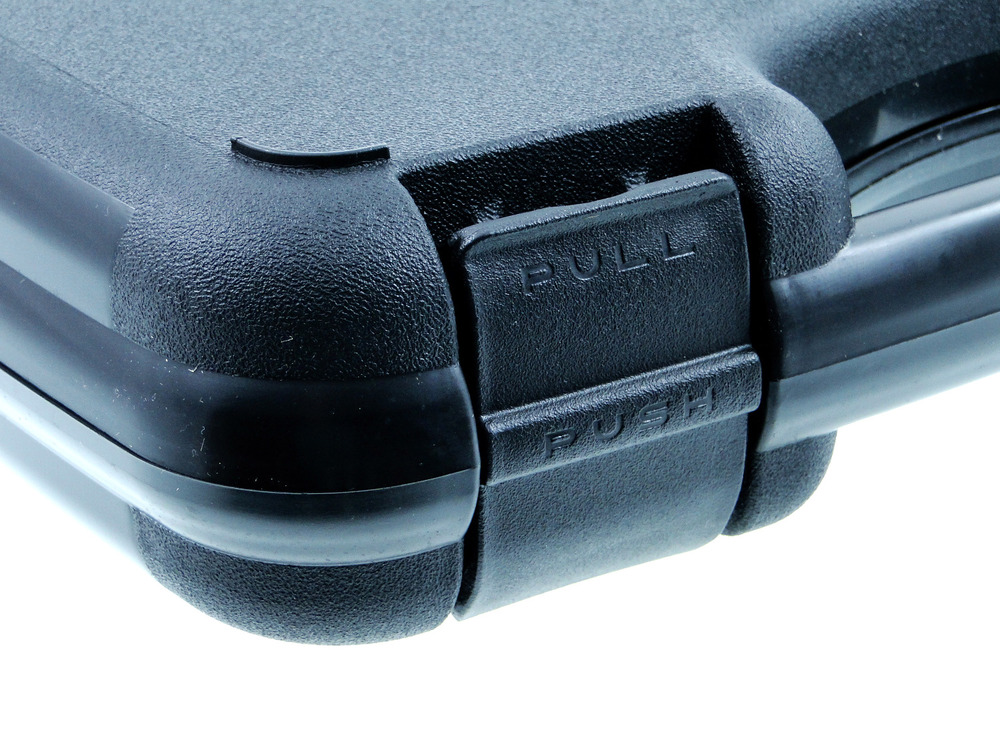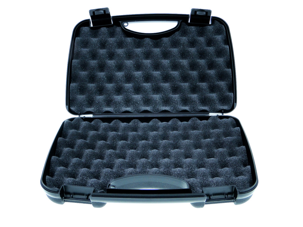 Kufer na broń krótką wykonany z mocnego tworzywa ABS wypełniony gąbką typu szczęki rekina.