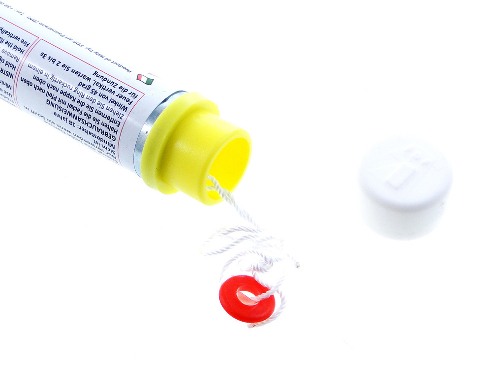 Odpalenie racy odbywa się przez zerwanie blokady i pociągnięcie za zawleczkę.