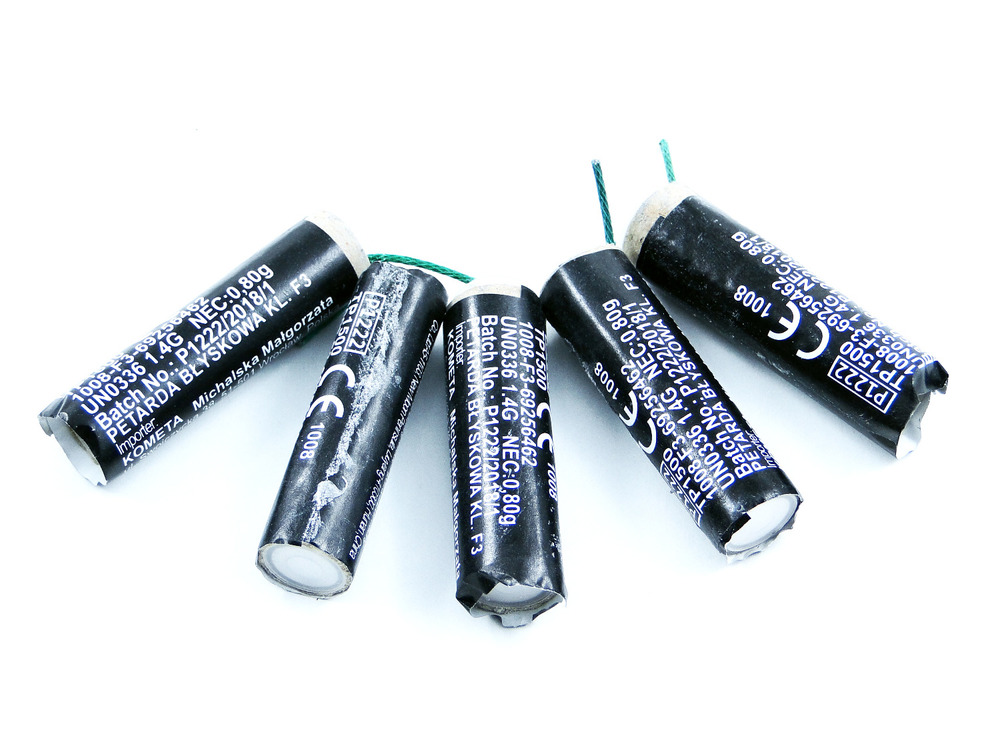 Petardy należy położyć na równym podłożu, odpalić wyciągniętą ręką koniec lontu i natychmiast się oddalić.