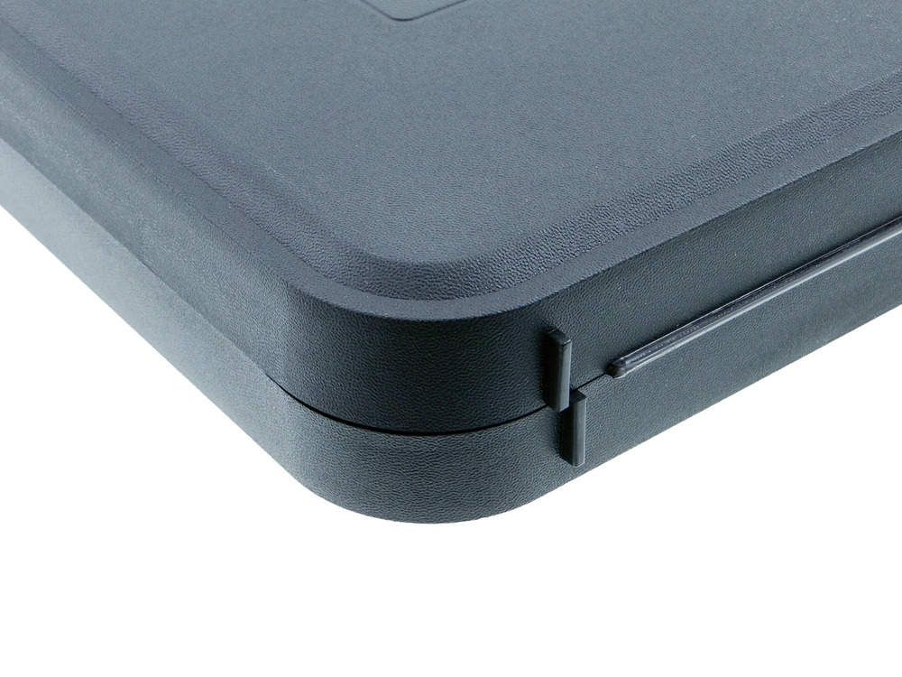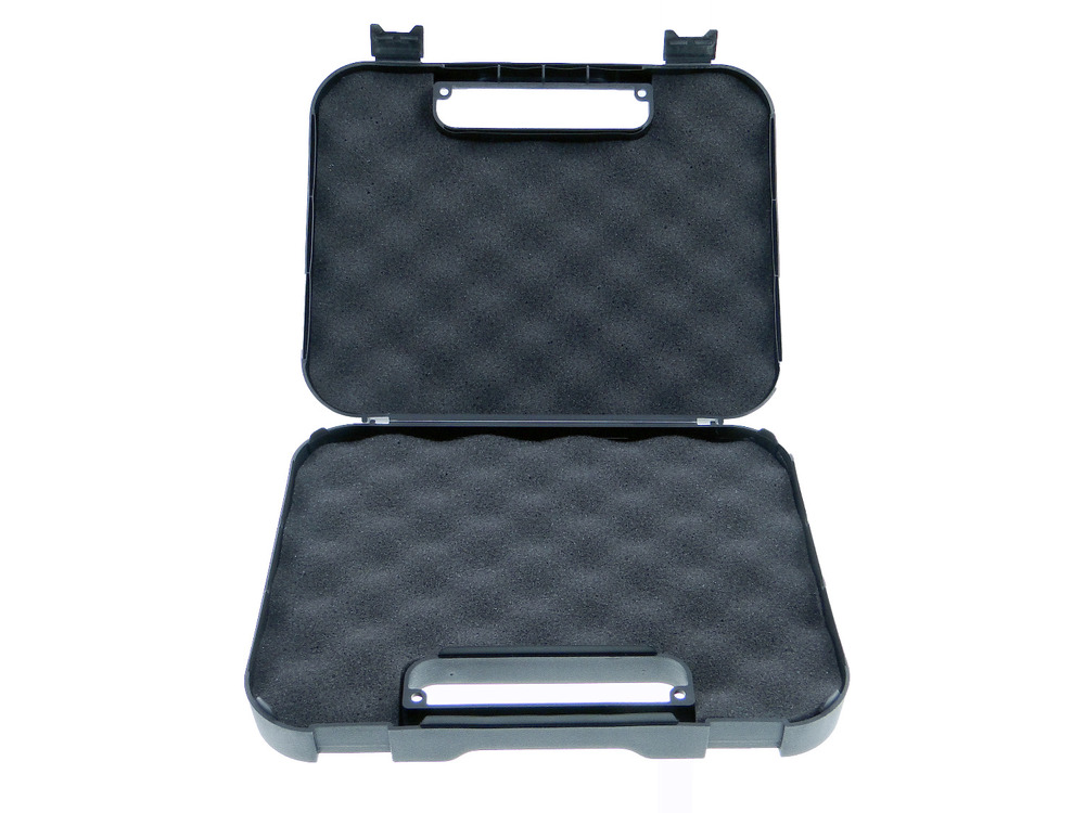 Kufer na broń krótką wykonany z mocnego tworzywa ABS wypełniony gąbką typu szczęki rekina.