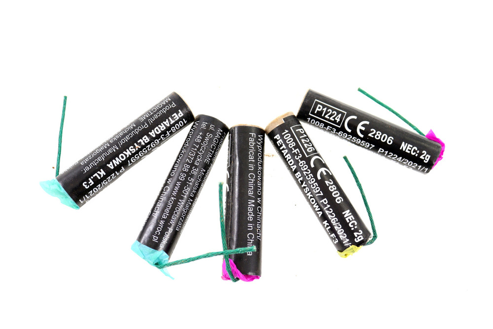 Petardy należy położyć na równym podłożu, odpalić wyciągniętą ręką koniec lontu i natychmiast się oddalić.