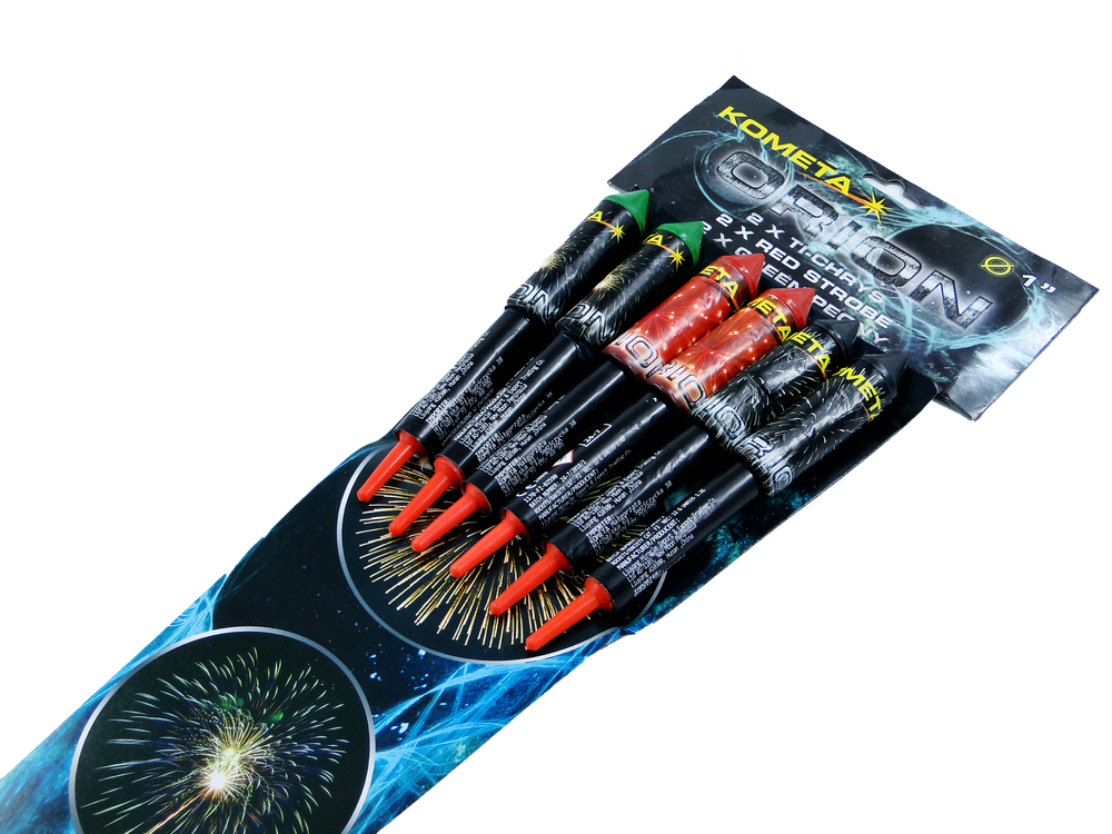 W komplecie znajduje się 6 jednakowej wielkości rakiet. Każda pojedyncza rakiety ma indywidualny kolor i rodzaj rozprysku.