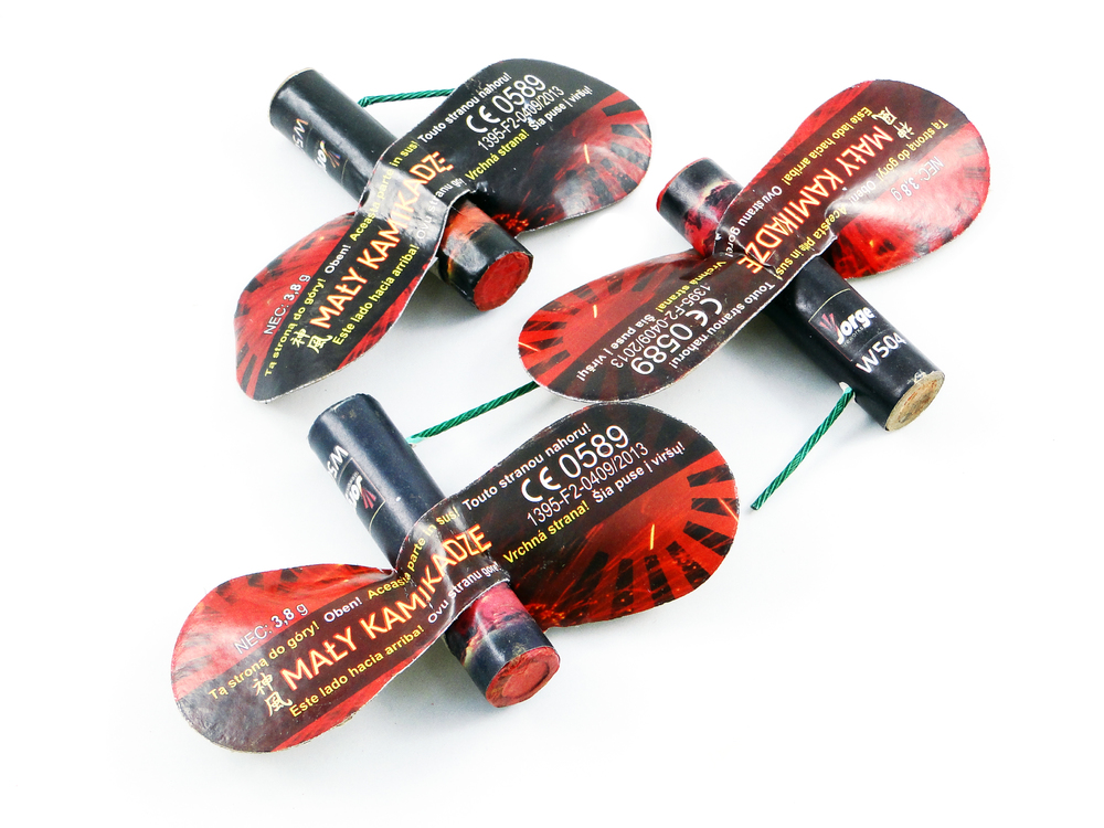 Motyle należy położyć na równym podłożu płasko kolorową stroną do góry, odpalić wyciągniętą ręką koniec lontu i natychmiast się oddalić.