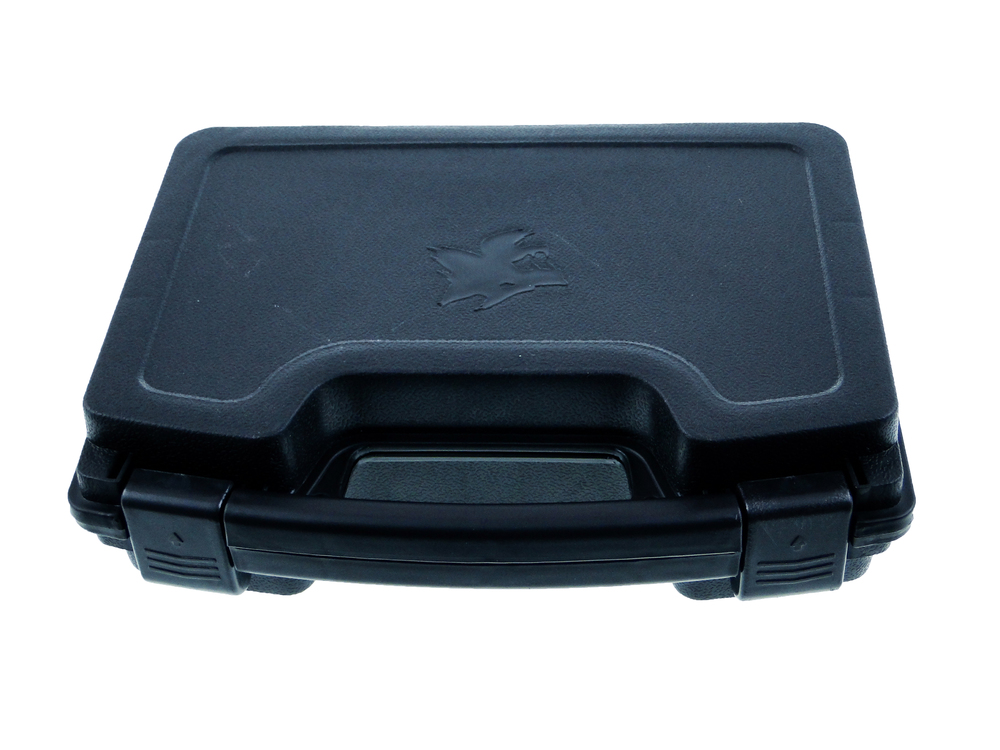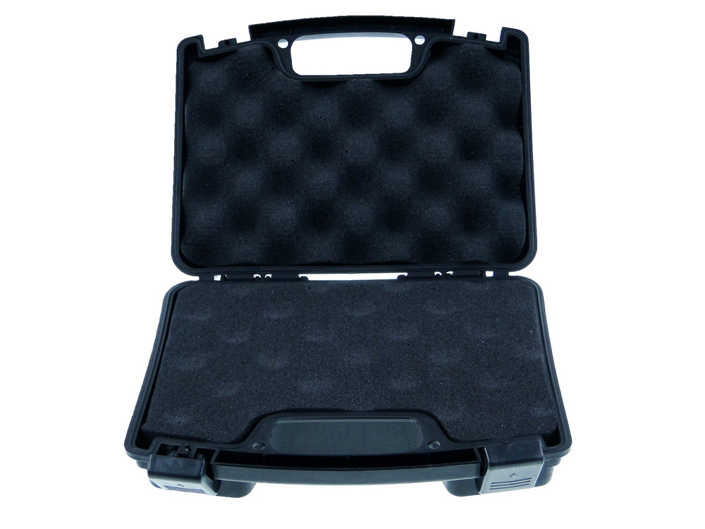 Kufer na broń krótką wykonany z mocnego tworzywa ABS wypełniony od góry gąbką typu szczęki rekina.