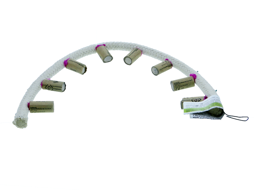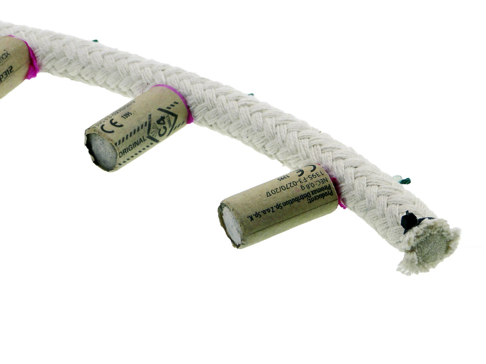 Sznur hukowy to specjalna lina z bawełny, na której umocowanych jest 8 petard. Sznur nasączony jest specjalną substancją, która powoduje powolne spalanie, dzięki czemu ładunki pirotechniczne odpalane są w odstępach czasowych. Interwały wynoszą ok. 60 minut.