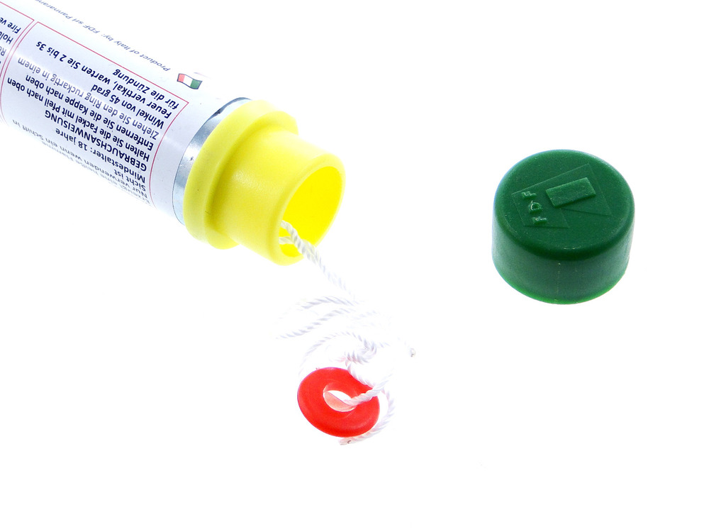 Odpalenie racy odbywa się przez zerwanie blokady i pociągnięcie za zawleczkę.