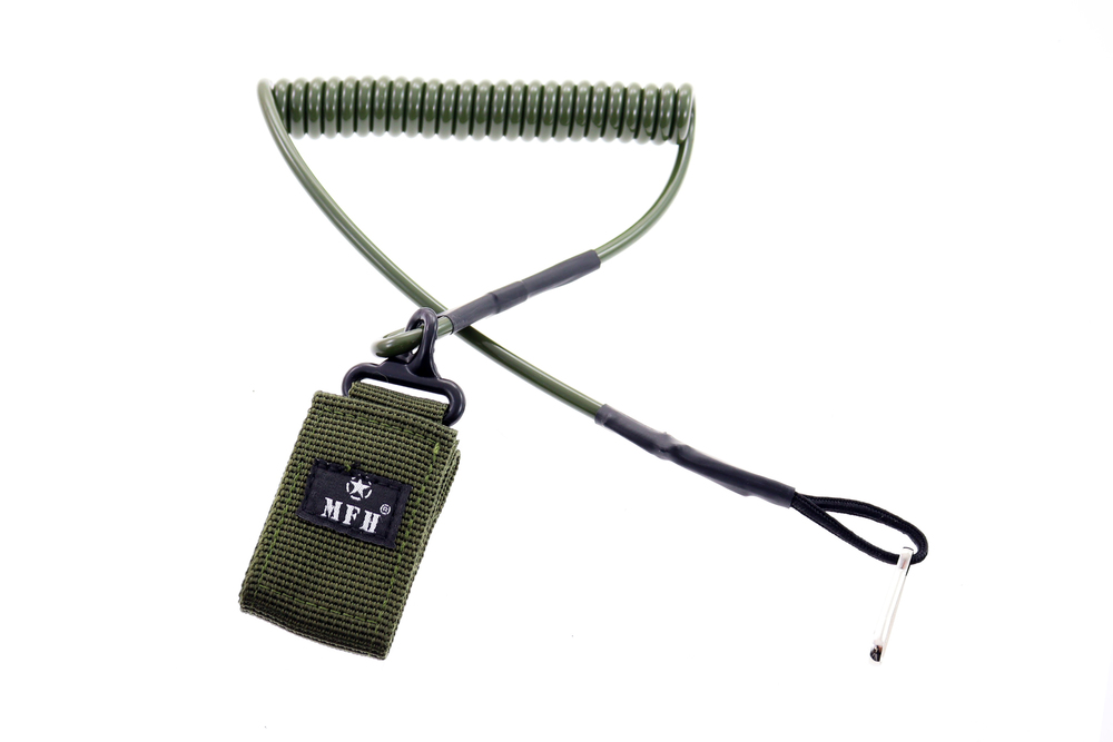 Elastyczna smycz do broni z mocowaniem do paska.